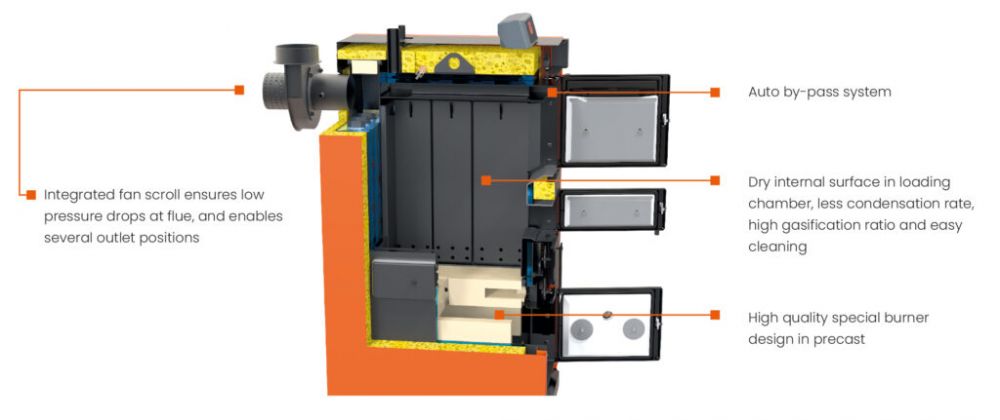 Vedpanna smart uppvärmning med ved som huvudvärmekälla